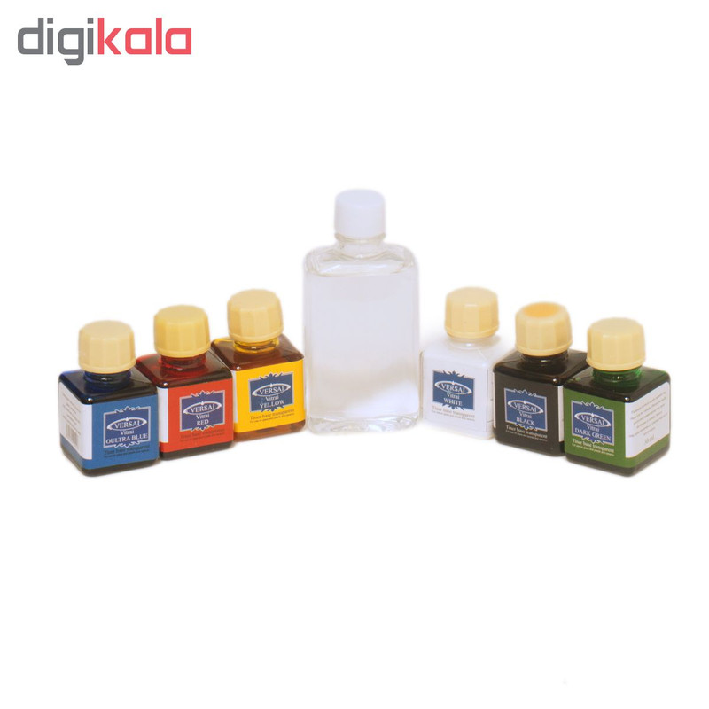 رنگ ویترای ورسای در بسته های شش رنگی و در بطری های 30 میلی به شما کمک میکند تا با داشتن رنگ های متفاوت هنر ویترای رو شروع کنید. این رنگ پایه تینر می باشد (حلال آن تینر می باشد ) بعد از خشک شدن با آب پاک نمی شود. این رنگ ها شفافیت (ترنسپرنسی) بالایی دارند . برای رقیق کردن رنگ ها بهتر است فقط از حلال همان برند استفاده کرد .