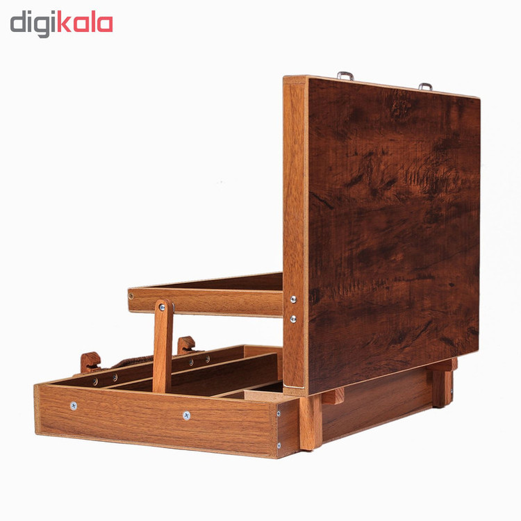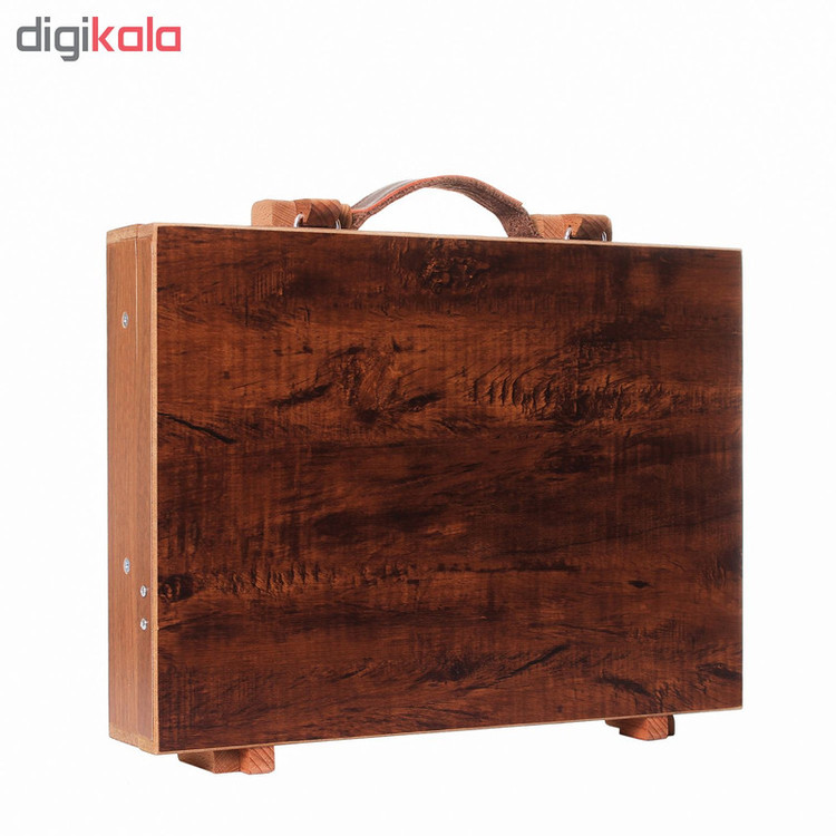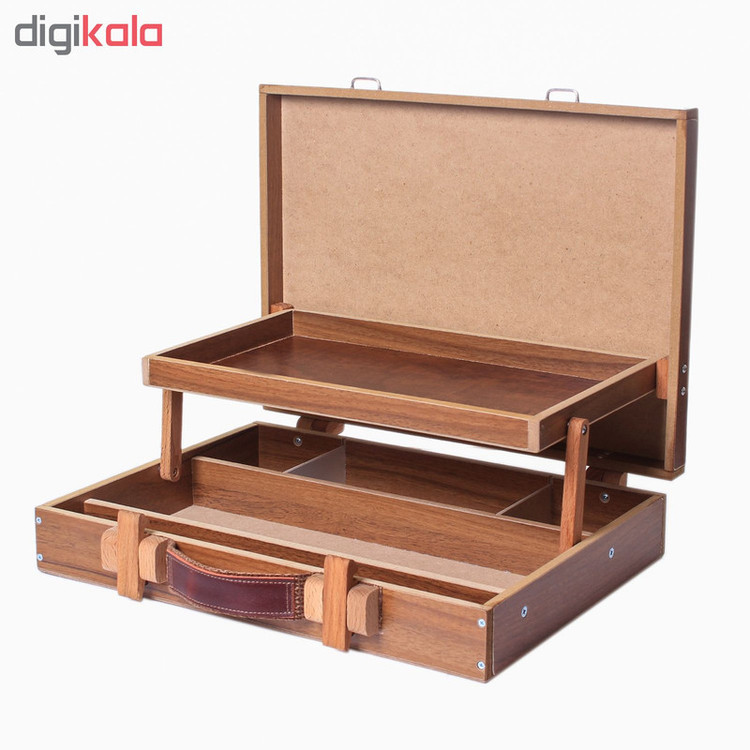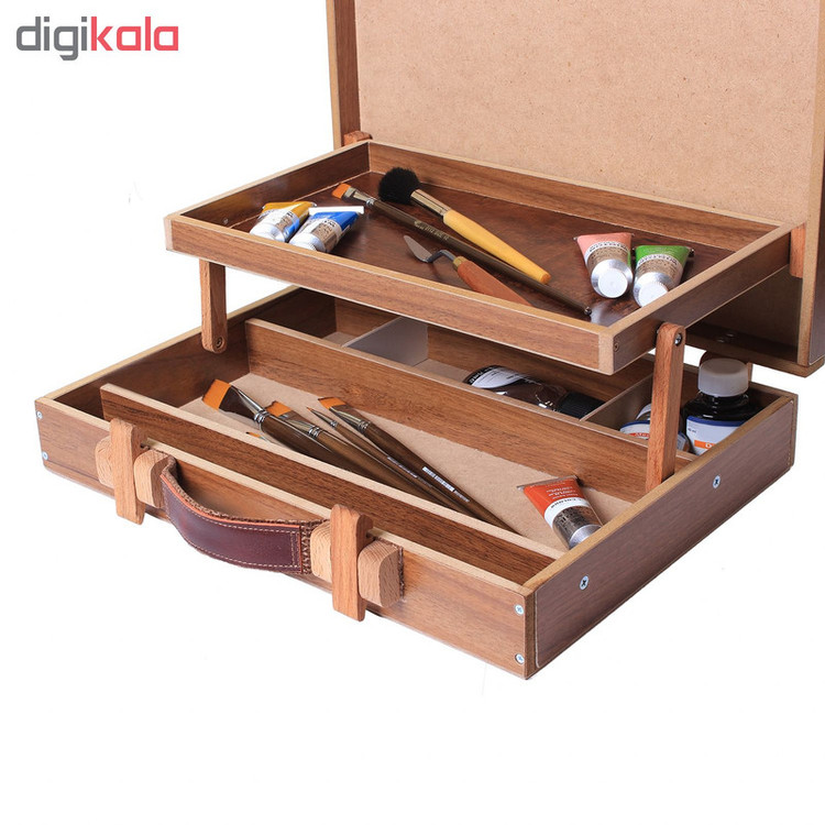 جعبه رنگ چوبی وسیله بسیار کاربردی برای هنرمندان میباشد،شما با کیف رنگ میتوانید تمامی قلموها،کاردک ها،انواع محلول های نقاشی،فرچه و بسیار از لوازم دیگر را داخل کیف قرار دهید.این کیف 2 طبقه شامل قسمت های مختلف میباشد تا بتوانید ابزار های مختلف را در جای مخصوص خود قرار دهید،برای تهیه این جعبه از بهترین چوب و ورق MDFاستفاده شده و یک عدد پالت رنگ روغن داخل جعبه قرار گرفته. طراحی و زیبایی این کیف نظر بسیار هنرمندان را به خود جلب کرده،معمولا رنگ های روغن کیف را سنگین میکنند و حمل آن دست را خسته میکند اما این محصول با دسته پارچه حمل آن را راحت تر کرده اگر به دنبال جعبه رنگ با کیفیت هستید بهترین گزینه برای خرید میباشد