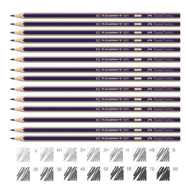 مجموعه 14 عددی مداد فابر کاستل شامل مدادهای F-4H-3H-2H-H-HB-B-2B-3B-4B-5B-6B-7B-8B می باشد. برای درجه بندی مدادها از علامت های H ، F ، HB و B که نمایانگر ویژگی های مداد از لحاظ نرمی، سختی، چربی و خشکی آنها می باشد استفاده می شود. مدادهای که با علامت H نام گذاری شده اند جزء دسته های سخت و کمرنگ قرار می گیرند. مدادهای سری B دارای مغزی نرمی هستند و در هنگام طراحی از خود خط به جای نمی گذارند. مدادهای سری F از نوع خشک و سخت می باشد اما پررنگی این سری از مدادهای از مدادهای سری H بیشتر است. مدادهای سری HB در عین حال که سخت هستند ، نرم نیز می باشند.