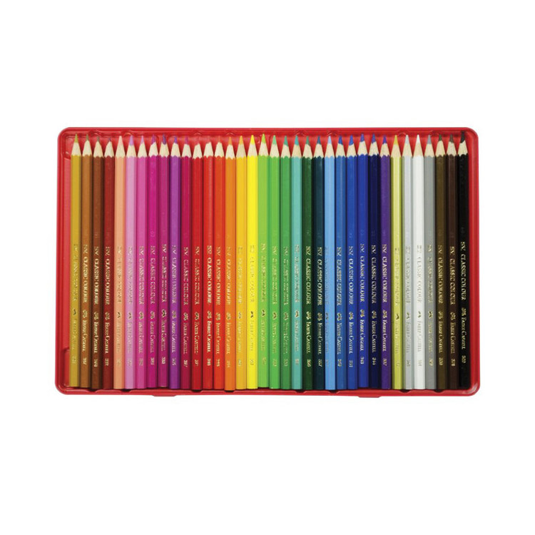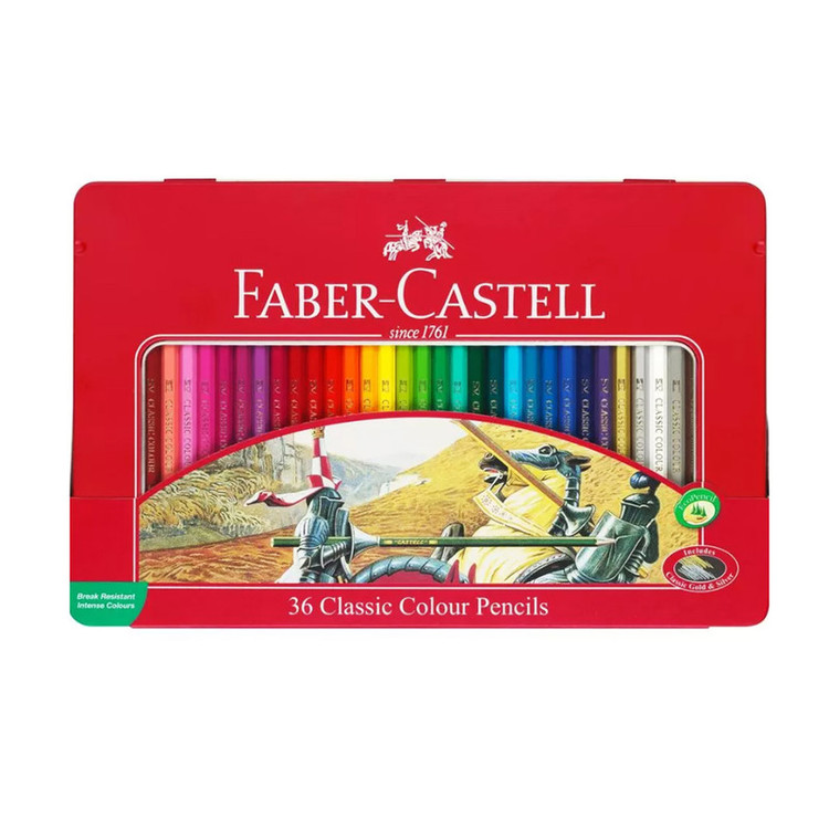 مدادرنگی Faber Castell مدل Classicرنگآمیزی یکی از سرگرمیهای محبوب همه افراد به خصوص کودکان بوده که میتوان توسط آن قوهی تخیل را در افراد تقویت کند. اما ابزار استفاده برای این کار هم بسیار تأثیر گذار خواهد بود. در ادامه میتوان به نکاتی که برای انتخاب مداد رنگی بسیار مهم و کاربردیست اشاره کرد مانند ظاهر مداد، تنوع رنگی و نوع آن، نوع چوب استفاده شده و بسته بندی.مداد رنگی کلاسیک Faber Castell با تنوع 36 رنگ، میتواند وسیلهای مناسب برای رنگ آمیزی بهحساب آید. این محصول که از نوع کلاسیک بوده میتوان توسط آن به راحتی هر نقش و نگاری را ترسیم کرد. چوب به کار رفته در ساخت این مداد رنگی از نوع قابل بازیافت (Eco-Pencil) است که با اکونومی فضای سبز سازگار بوده و در پروسه ساخت آن به محیط زیست هیچ گونه صدمهای وارد نمیشود. قطر نوشتاری این مداد رنگی 3.3 میلیمتر بوده که میتوان توسط آن نقاشی زیبایی طراحی کرد و حتی داخل برگها را هم به راحتی رنگ کرد. نوع بسته بندی این محصول از نوع فلزی بوده، که میتوان از آن به آسانی استفاده کرد.در زیر میتوانید نمونههایی که توسط این محصول کشیده شده است را مشاهده کنید.