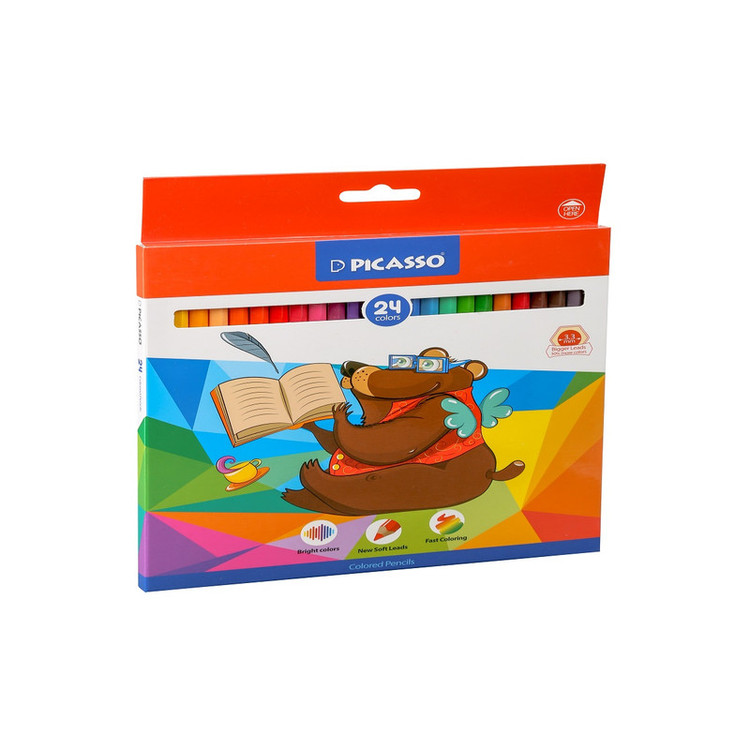 مداد رنگی 24 رنگ جعبه مقوایی پیکاسو (طرح جدید) را می توان یکی از با کیفیت ترین مداد رنگی ها نسبت به رقبا دانست. چرا که هم از کیفیت چوب بالایی برخوردار است و هم گرافیت استفاده شده در مغز مداد، در 24 رنگ مختلف بسیار مرغوب است. نرم بودن مغزی مداد رنگی، تراشیده شدن به راحتی و شکسته نشدن در حین فرآیند تراشیده شدن و همچنین رنگ های جذاب و درخشان، از ویژگی های مداد رنگی های پیکاسو می باشد. طیف رنگی هر جعبه از این مداد رنگی، گستردگی بالایی (در رنگ های گرم و سرد) دارد و برای نقاشان نیمه حرفه ای و افرادی که به نقاشی، به عنوان یک حرفه هنری نگاه دارند، گزینه ی بسیار مناسبی است.
