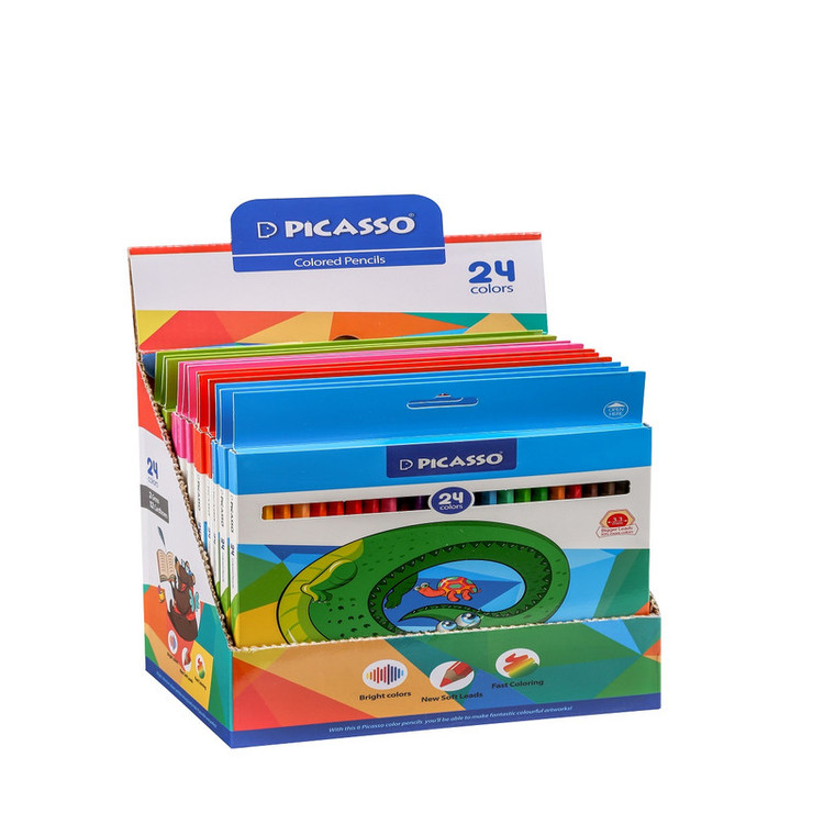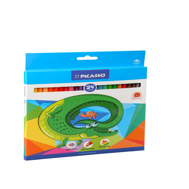 مداد رنگی 24 رنگ جعبه مقوایی پیکاسو (طرح جدید) را می توان یکی از با کیفیت ترین مداد رنگی ها نسبت به رقبا دانست. چرا که هم از کیفیت چوب بالایی برخوردار است و هم گرافیت استفاده شده در مغز مداد، در 24 رنگ مختلف بسیار مرغوب است. نرم بودن مغزی مداد رنگی، تراشیده شدن به راحتی و شکسته نشدن در حین فرآیند تراشیده شدن و همچنین رنگ های جذاب و درخشان، از ویژگی های مداد رنگی های پیکاسو می باشد. طیف رنگی هر جعبه از این مداد رنگی، گستردگی بالایی (در رنگ های گرم و سرد) دارد و برای نقاشان نیمه حرفه ای و افرادی که به نقاشی، به عنوان یک حرفه هنری نگاه دارند، گزینه ی بسیار مناسبی است.